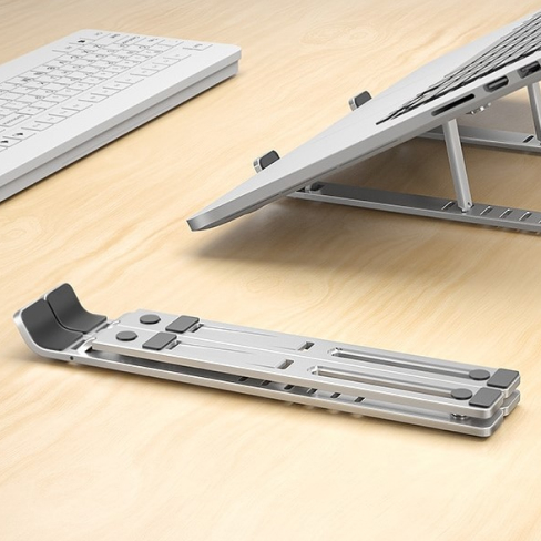 I really like how durable and simplistic this is. It weighs almost about nothing it comes in a cute gray pouch. There's no parts to assemble it's durable Its made of metal. You can use it for more than just your laptop. It works well with a tablet, a book, and I'm sure you can even use it for landscape mode for a phone, you don't have to open it all the way for it to work. It's very versatile and definitely a must-have for trying to ventilate a laptop and get a ton of more different types of uses at it while you're on the go or in the kitchen. Absolutely must buy!