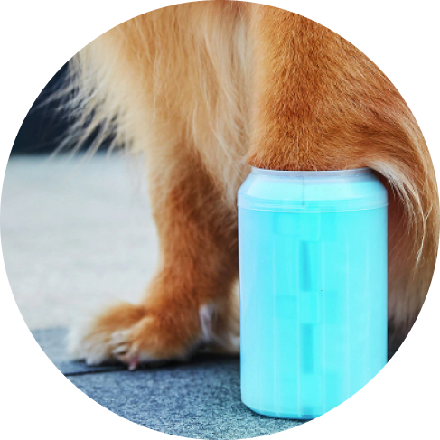 My chihuahua reluctantly agreed to let my grandson clean his paws with this paw cleaner. It consists of a sturdy plastic cup with soft, silicone fingerlets inside for cleaning. Just fill the cup about 3/4 full with warm soapy water and put the dog’s paw in a few times. The paw comes clean in a jiffy. Repeat on the other 3 paws. It can be used on a little or a big dog. It’s portable so it’s good to take camping, to the park, or to use at home.